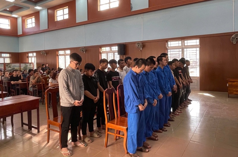 Các bị cáo gồm: Nguyễn Văn Hưng (SN 2007), Phạm Hữu Quang (SN 2007), Vũ Thái Phong (SN 2007), Nguyễn Phúc Thiên (SN 2006), Trần Bảo Quân (SN 2009), Nguyễn Hoàng Quân (SN 2009), Nguyễn Gia Bảo (SN 2007), Phạm Bùi Khánh Huy (SN 2009), Não Ngọc Phi Hùng (SN 2008), Huỳnh Ngọc Bảo Tú (SN 2007), Nguyễn Văn Hoàng (SN 2006), Quý Tân Khoa (SN 2008), Hà Phạm Phú Quý (SN 2003), Trần Khánh Hoàng (SN 2007), Lương Đình Tuyển (SN 2007), Vũ Lê Minh (SN 2008), Phan Thanh Bảo Lộc (SN 2007), Trịnh Phương Nam (SN 2007), Nguyễn Hoàng Lưu (SN 2007), Phạm Anh Hào (SN 2006), Phạm Trí Đức (SN 2007), Nguyễn Phước Hải (SN 2007), Hoàng Trọng Tấn (SN 2008).