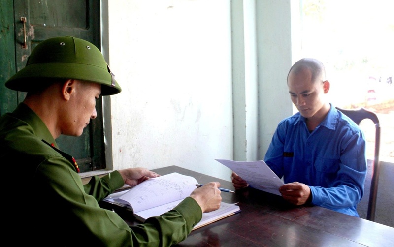 Cán bộ quản giáo thực hiện công tác giáo dục can phạm