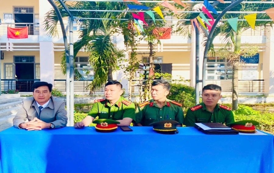 Đại diện Ban Giám hiệu nhà trường và các đồng chí Công an xã tại buổi tuyên truyền