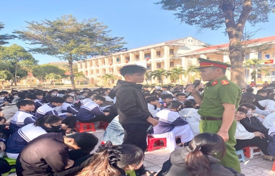 Một hình thức nguy hiểm đang gia tăng là "bắt cóc online", trong đó các em bị dụ dỗ tự “cô lập” bản thân, khiến gia đình tưởng rằng mất tích. Ngoài ra, cán bộ còn truyền đạt kiến thức cơ bản về Luật An ninh mạng; giới thiệu và lan tỏa thông điệp của Chiến dịch “Không một mình” – “Cùng nhau an toàn trực tuyến”, giúp học sinh nâng cao cảnh giác, biết cách nhận diện, ứng phó với các tình huống phổ biến mà tội phạm mạng thường sử dụng.
