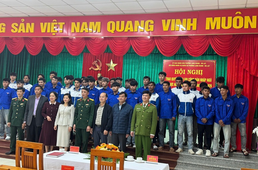 Ngày 12/02/2026, tại Ban Chỉ huy quân sự phường Lang Biang – Đà Lạt, Hội đồng nghĩa vụ quân sự phường đã tổ chức Hội nghị trao Quyết định gọi công dân nhập ngũ vào Quân đội và công dân thực hiện nghĩa vụ tham gia Công an nhân dân năm 2026. Tham dự Hội nghị có đại diện Đảng ủy, HĐND, UBND phường, các ban, ngành, đoàn thể cùng gia đình và các công dân trúng tuyển. Tại Hội nghị, Ban tổ chức đã trao quyết định và tặng quà động viên 35 công dân nhập ngũ vào Quân đội và 07 công dân thực hiện nghĩa vụ tham gia Công an nhân dân năm 2026. Đại diện Ban Chỉ huy Công an phường trao quyết định và quà cho công dân thực hiện nghĩa vụ Công an nhân dân Kết quả Hội nghị thể hiện sự phối hợp chặt chẽ giữa Công an phường với Ban Chỉ huy quân sự và các ban, ngành, đoàn thể trong công tác tuyên truyền, tuyển chọn công dân bảo đảm đúng quy định, hoàn thành chỉ tiêu được giao. Hội nghị chụp hình lưu niệm Các công dân trúng tuyển là niềm tự hào của gia đình và địa phương, đồng thời thể hiện quyết tâm rèn luyện, phấn đấu hoàn thành tốt nhiệm vụ được giao, góp phần xây dựng và bảo vệ Tổ quốc. Công an phường Lang Biang – Đà Lạt