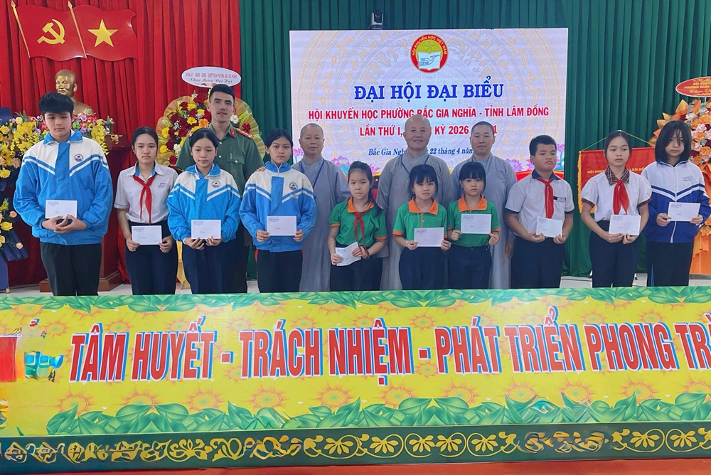 Tiếp nối hoạt động ý nghĩa này, ngày 22/4/2026, trong khuôn khổ Đại hội Đại biểu Hội Khuyến học phường Bắc Gia Nghĩa lần thứ I, nhiệm kỳ 2026–2031, đoàn công tác tiếp tục trao thêm 20 suất học bổng (mỗi suất 500.000 đồng) cho học sinh nghèo vượt khó trên địa bàn.
