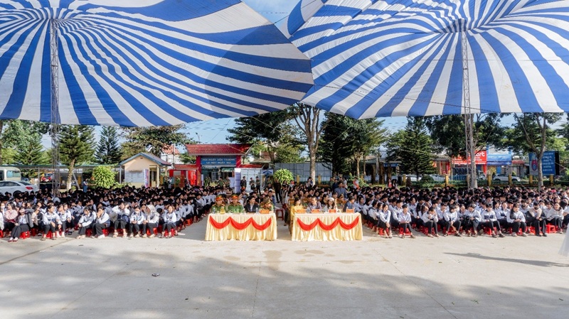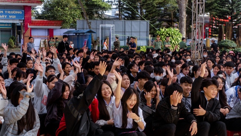Chương trình có sự góp mặt của hơn 1.800 học sinh, giáo viên đến từ các trường THPT Trần Hưng Đạo, THPT Đắk Mil, phổ thông DTNT THCS - THPT Đắk Mil, THPT Chuyên Nguyễn Chí Thanh và THPT Gia Nghĩa, cùng 40 đại biểu, KOL, chỉ huy Công an cấp xã trên địa bàn và lân cận. Việc tổ chức theo cụm, huy động nhiều trường cùng tham gia là cách làm linh hoạt, hiệu quả, không chỉ mở rộng quy mô tiếp cận, mà còn giúp chương trình vượt khỏi phạm vi nội bộ của từng đơn vị, trở thành diễn đàn chung để học sinh các trường được giao lưu, trao đổi góc nhìn, từ đó tiếp nhận vấn đề một cách đa chiều và sống động hơn.