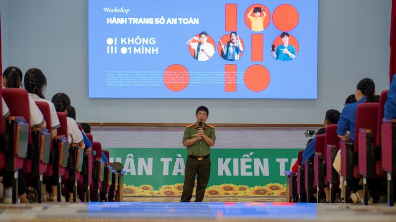 Nếu đợt 1 của chuỗi School Tour “Hành trang số an toàn” hướng đến sinh viên – nhóm chịu rủi ro lớn trước các hoạt động lừa đảo tinh vi, thì đợt 2 tập trung vào học sinh THPT, những người trẻ đang chịu áp lực học đường, biến động tâm lý tuổi dậy thì và mức độ tiếp xúc mạng xã hội ngày càng tăng. Khác với sinh viên, nhóm học sinh THPT thường tiếp nhận thông tin theo cảm xúc, dễ tin, dễ chia sẻ và dễ bị dẫn dắt bởi các xu hướng lan truyền, các trào lưu lệch chuẩn. Vì vậy, thay vì nói về rủi ro theo cách cảnh báo, chương trình tập trung hướng dẫn các em về kỹ năng phản xạ an toàn, đặc biệt trong các tình huống khẩn cấp: cách bình tĩnh xác minh thông tin, quy trình báo Công an, nhận diện dấu hiệu lừa đảo, xử lý khi bị tống tiền online, bảo vệ dữ liệu và thiết bị cá nhân,… Từ đó tạo nên một không gian cởi mở, nơi các em mạnh dạn nêu thắc mắc, kể lại các trải nghiệm của mình và chia sẻ những vấn đề mà trước đây nhiều bạn còn e ngại nói ra.