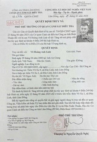Quyết định truy nã đặc biệt đối với Võ Hoàng Anh Linh