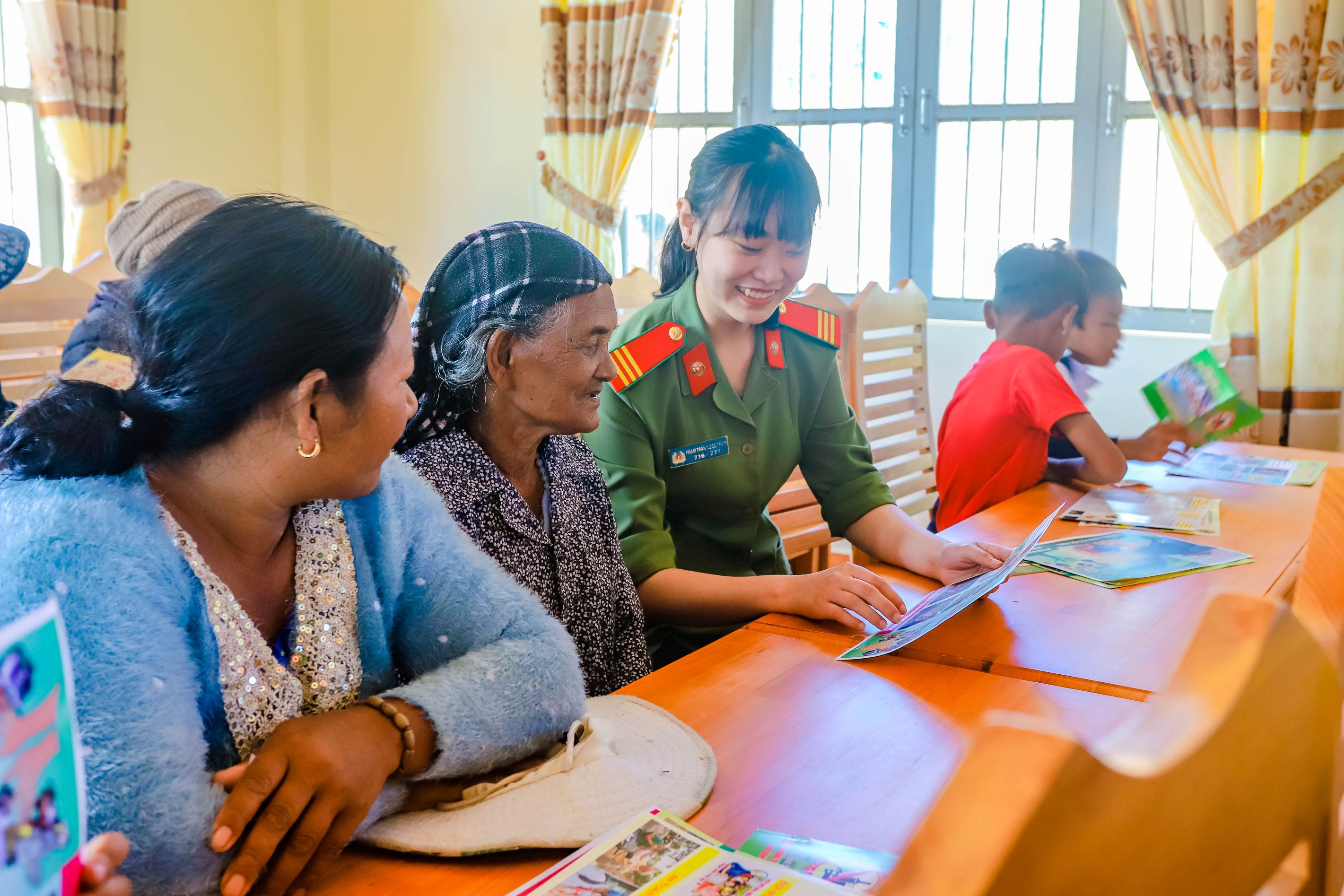 Nữ cán bộ Công an tỉnh tuyên truyền pháp luật cho đồng bào người dân tộc thiểu số