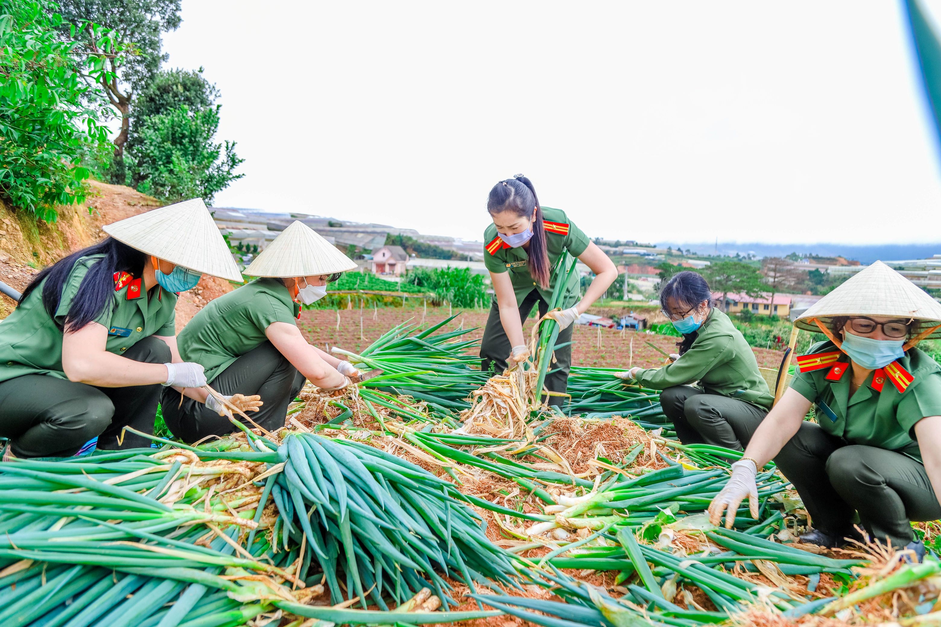 Cán bộ, hội viên Hội Phụ nữ Công an tỉnh tham gia thu hoạch nông sản hỗ trợ nhân dân các tỉnh chịu ảnh hưởng bởi dịch Covid-19