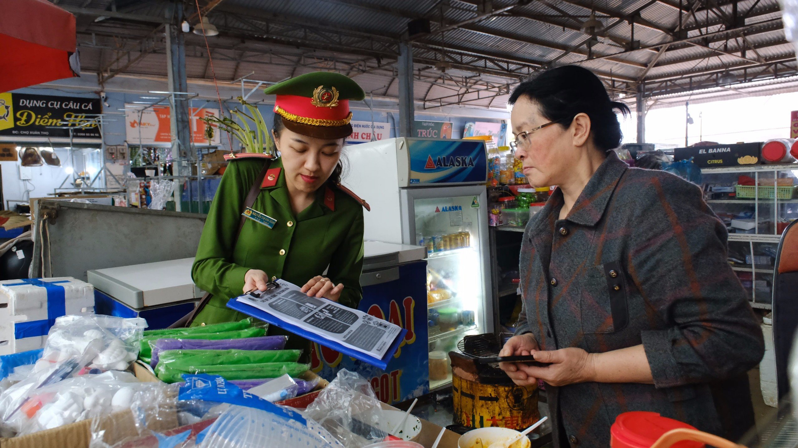 Nữ cảnh sát khu vực đi từng ngõ, gõ từng nhà vận động quần chúng nhân dân chấp hành pháp luật