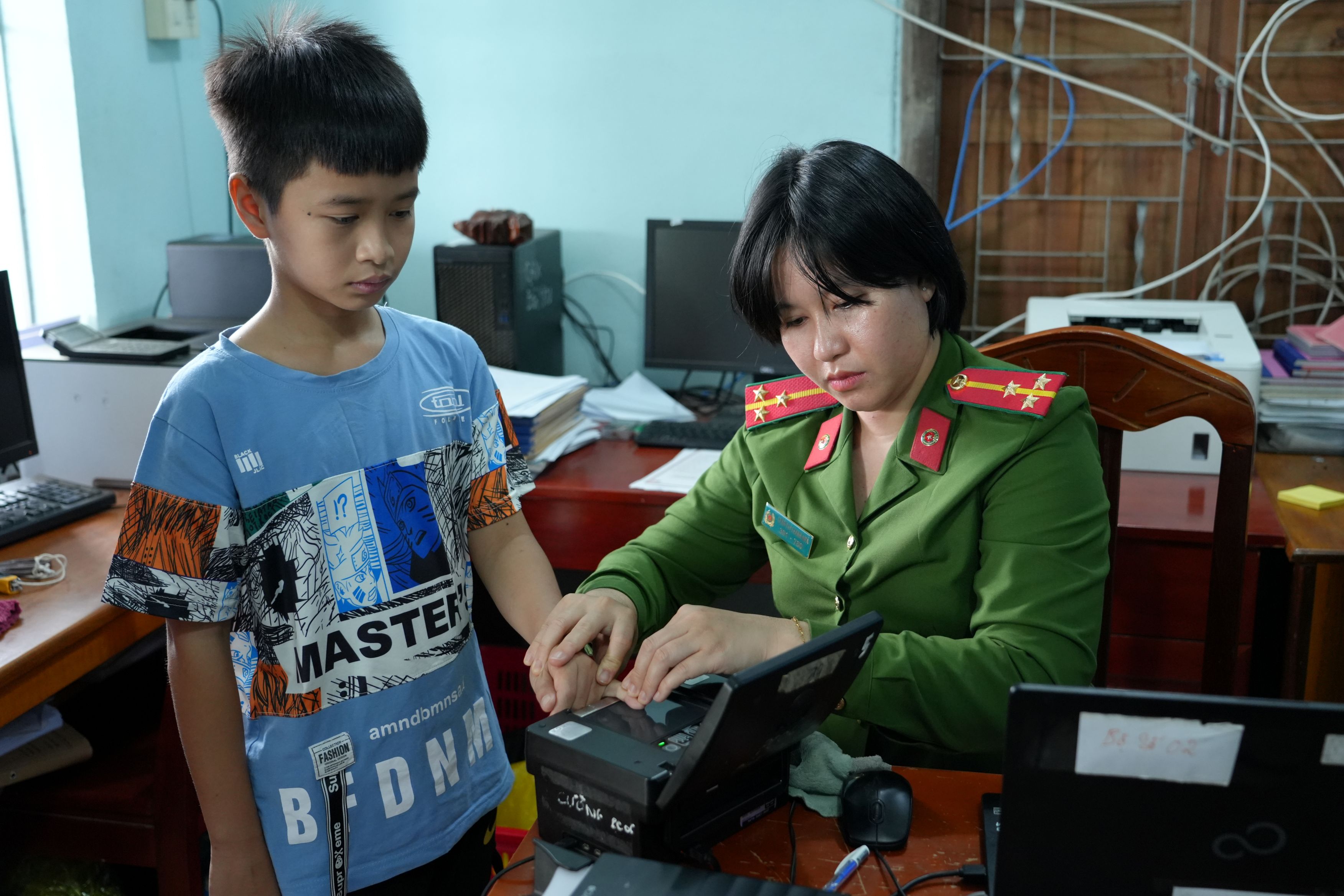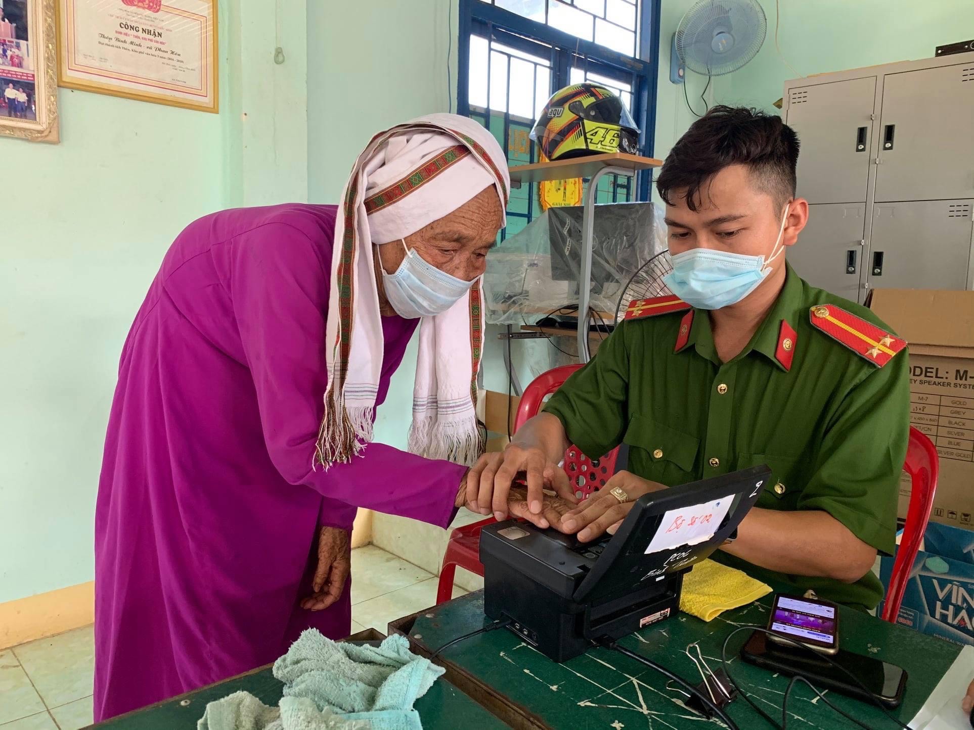 Cán bộ, chiến sỹ thu nhận vân tay cho người đồng bào dân tộc Chăm