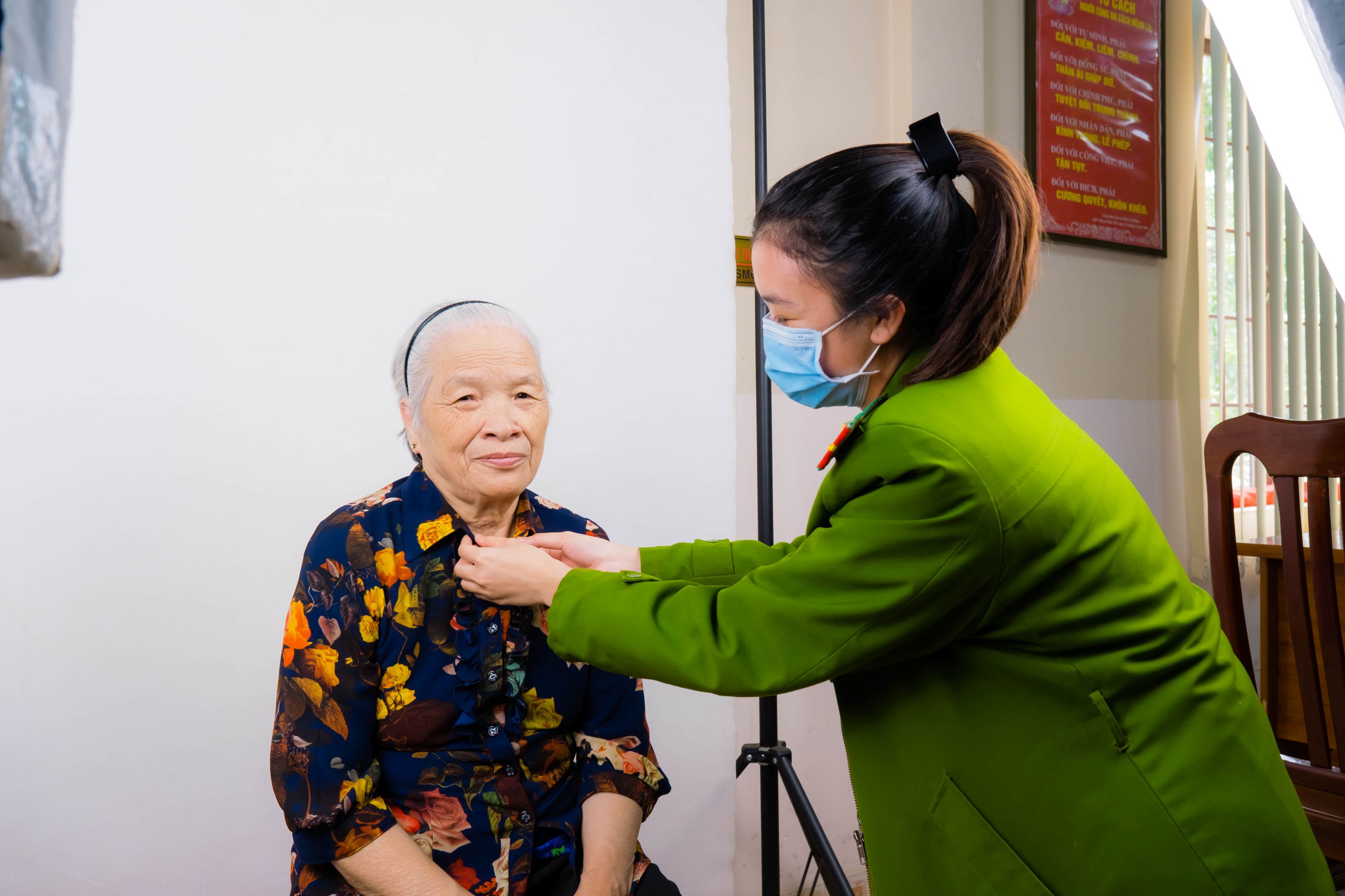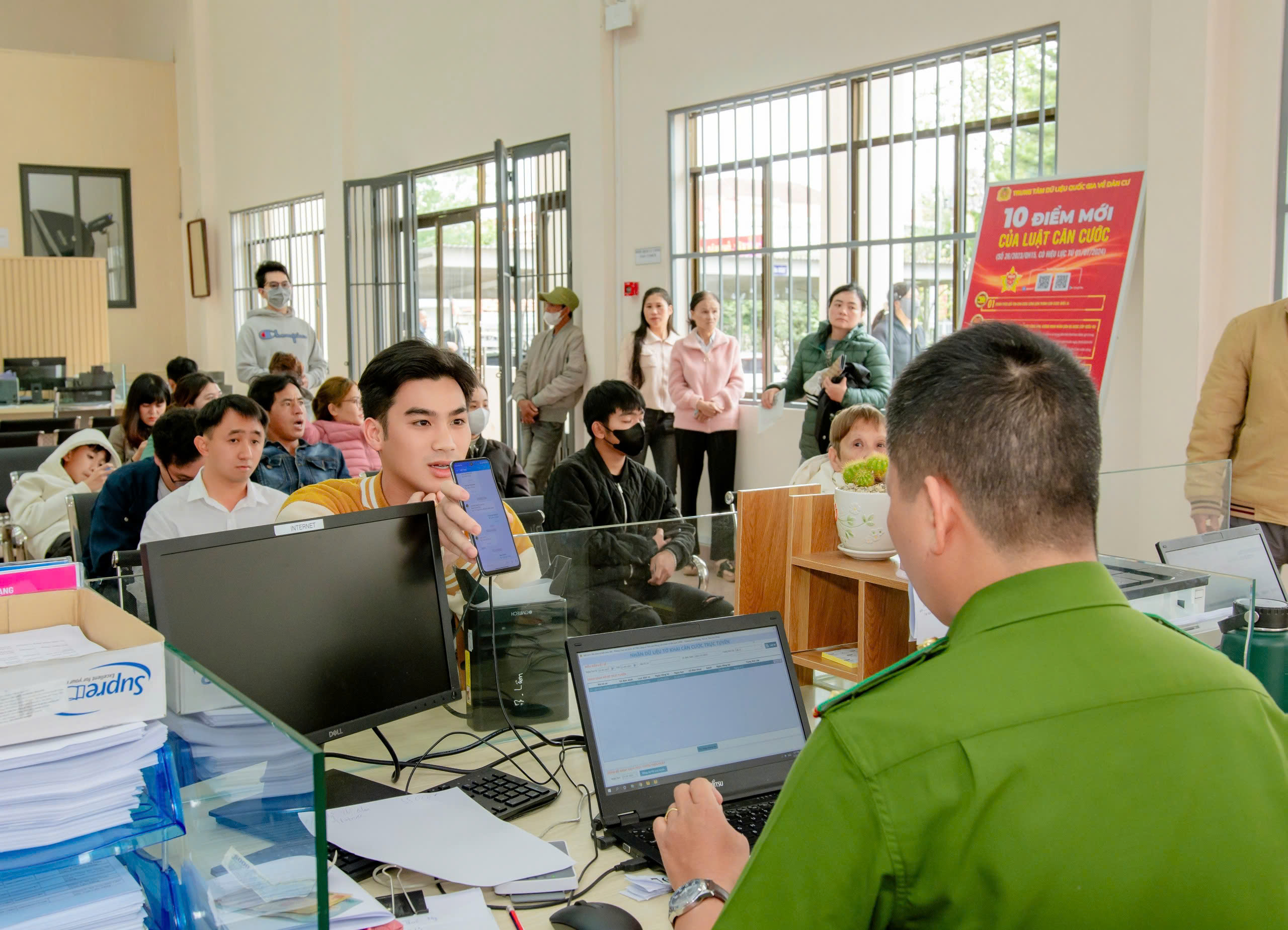 Cán bộ, chiến sỹ giúp đỡ nhân dân khi đến làm căn cước