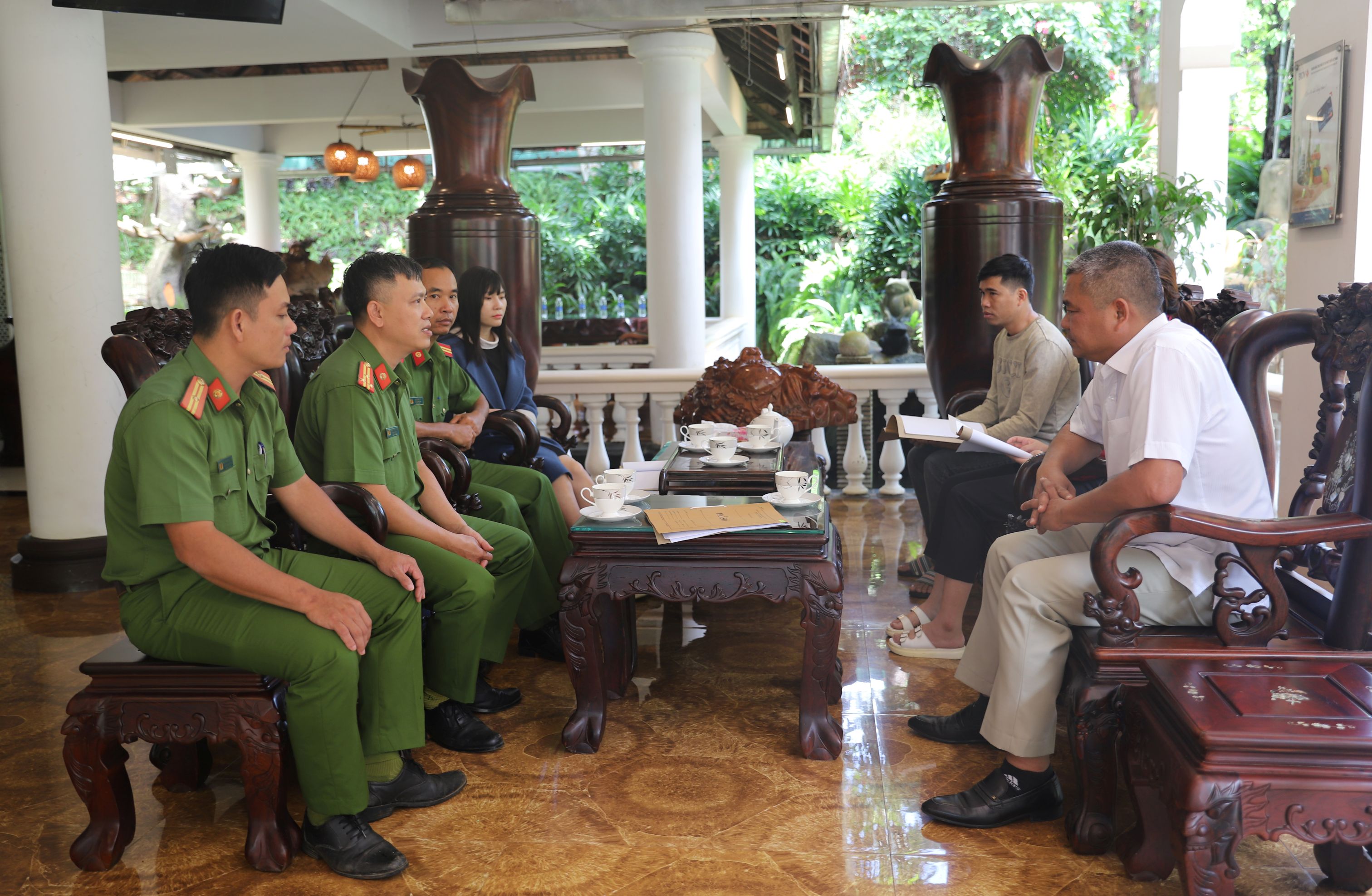 Lực lượng cảnh sát quản lý hành chính về trật tự xã hội Công an tỉnh trao đổi thông tin với đại diện các cơ sở kinh doanh dịch vụ lưu trú khu vực Đắk Nông cũ
