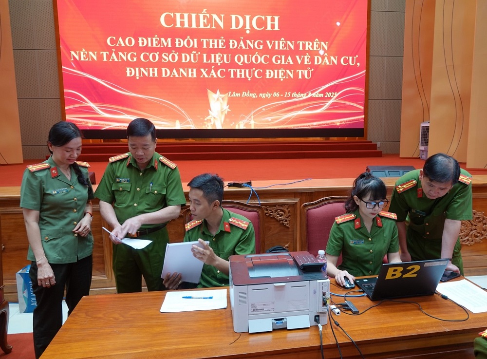 Ngay trong sáng phát động, Đại tá Nguyễn Tường Vũ – Phó Giám đốc Công an tỉnh đã trực tiếp kiểm tra các điểm tiếp nhận tại Công an tỉnh, Phòng Cảnh sát QLHC về TTXH và Trung tâm hành chính công phường Lâm Viên; lắng nghe khó khăn, vướng mắc của tổ công tác và chỉ đạo giải pháp kịp thời để bảo đảm tiến độ. Đoàn công tác của phòng Cảnh sát quản lý hành chính về trật tự xã hội đã phối hợp với phòng Tham mưu - Công an tỉnh trực tiếp kiểm tra độ ổn định đường truyền, thời gian xử lý hồ sơ, hiệu quả vận hành từng khâu; đồng thời hướng dẫn Công an cấp xã rà soát, đối chiếu thông tin đảng viên với dữ liệu dân cư để bảo đảm đồng bộ, chính xác, đúng quy trình và quy định của Đảng.