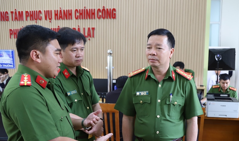 Đại tá Nguyễn Tường Vũ, Phó giám đốc Công an tỉnh kiểm tra, đôn đốc điểm tiếp nhận tại Công an tỉnh Lâm Đồng và TTHC phường Lâm Viên – Đà Lạt