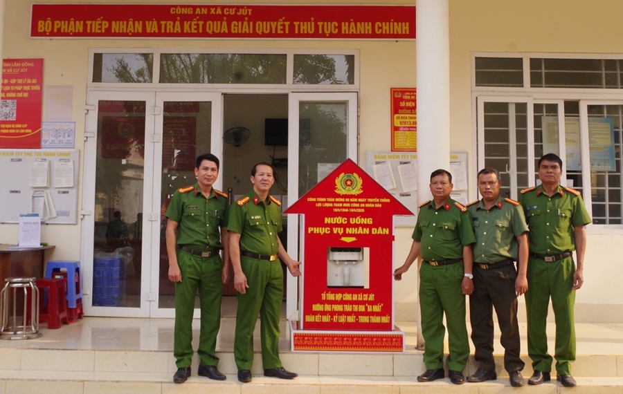 Điểm nhấn đầy ý nghĩa của chương trình là lễ ra mắt công trình “Nước uống phục vụ Nhân dân” - một mô hình nhỏ nhưng mang giá trị nhân văn sâu sắc. Công trình không chỉ đáp ứng nhu cầu thiết thực của người dân khi đến liên hệ công tác mà còn thể hiện rõ nét tinh thần “vì Nhân dân phục vụ”, sự quan tâm chân thành, gần gũi của lực lượng Công an xã đối với cộng đồng. Từ những hành động giản dị nhưng xuất phát từ trái tim, hình ảnh người chiến sĩ Công an xã Cư Jút ngày càng trở nên thân thiện, tin cậy trong lòng Nhân dân.