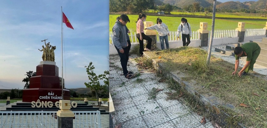 Phối hợp dọn dẹp vệ sinh khu vực Đài chiến thắng Sông Quao