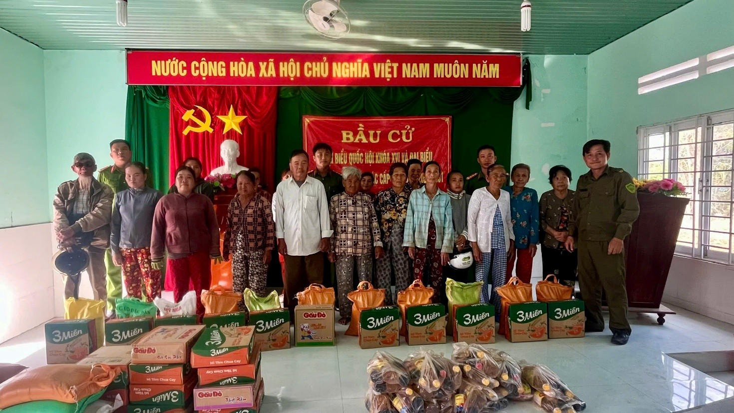 Tuổi trẻ Công an xã tặng quà cho các hộ gia đình có hoàn cảnh khó khăn