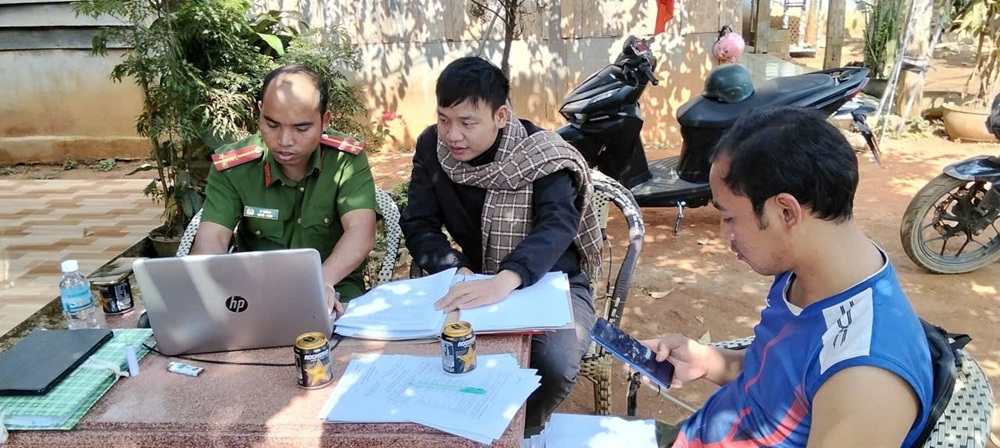 Hình ảnh: Cán bộ, chiến sĩ đến từng thôn, bon để rà soát danh sách cử tri.