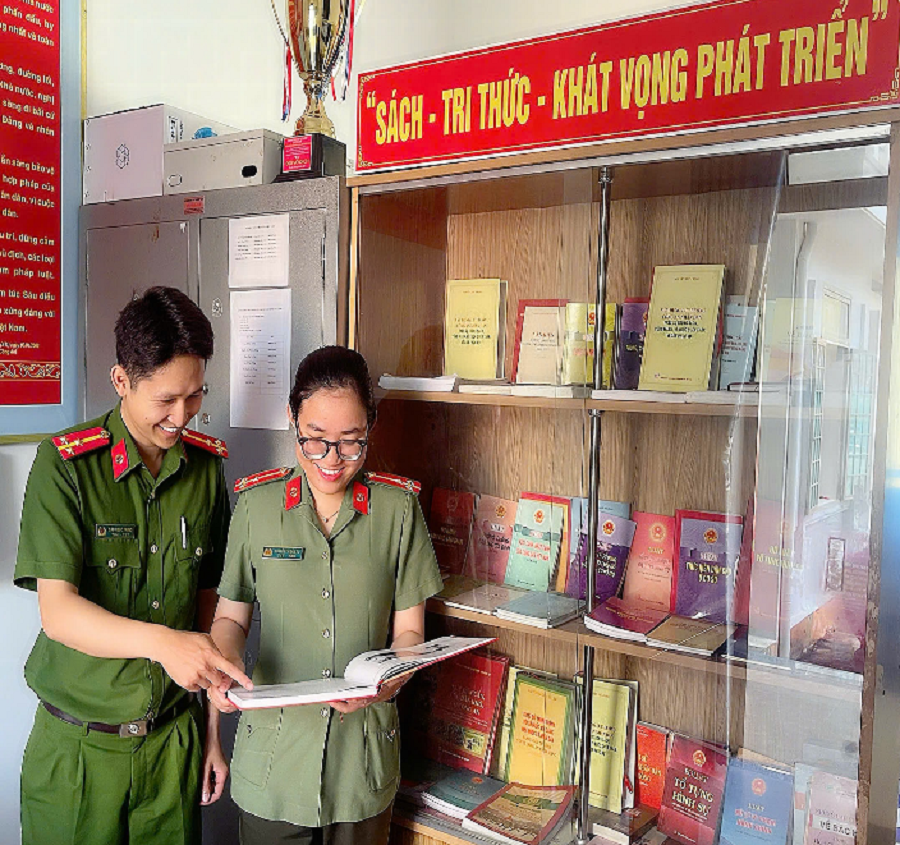Tại đơn vị, “Tủ sách pháp luật” được trang bị nhiều đầu sách liên quan đến nghiệp vụ, pháp luật, sách tham khảo, báo, tạp chí… tạo điều kiện thuận lợi để cán bộ, chiến sĩ tiếp cận nguồn tư liệu phong phú, nâng cao trình độ nhận thức về nghiệp vụ, pháp luật và đời sống xã hội. Qua đó góp phần vận dụng hiệu quả vào công tác chuyên môn, hoàn thành tốt nhiệm vụ được giao.