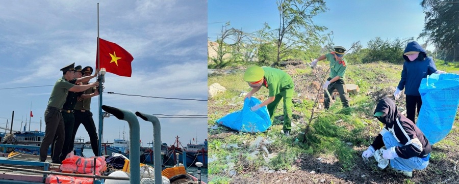 Cùng với đó, đoàn đã trao tặng cờ Tổ quốc cho ngư dân, góp phần động viên bà con tiếp tục vươn khơi, bám biển, bảo vệ chủ quyền thiêng liêng của Tổ quốc. Các đoàn viên cũng tham gia dọn vệ sinh khu vực bãi biển, trồng 05 cây dương tại bãi biển Triều Dương, góp phần tạo cảnh quan môi trường xanh, sạch, đẹp và nâng cao ý thức bảo vệ môi trường trong Nhân dân.