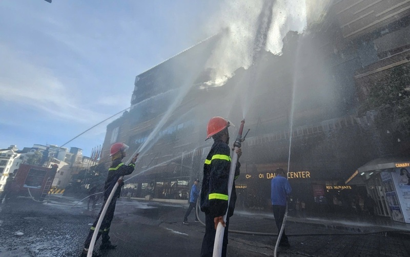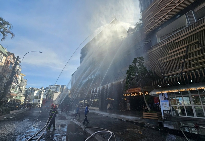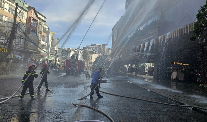 Đến 14h30 cùng ngày, Phòng Cảnh sát PCCC và CNCH phối hợp với Ban Quản lý Tòa nhà Đà Lạt Center thuộc Công ty Cổ phần Len Nguyễn tổ chức thực tập phương án chữa cháy, cứu nạn, cứu hộ tại cơ sở.