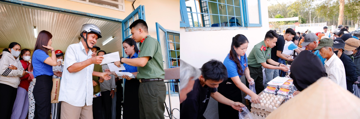 Chi đoàn Công an xã Suối Kiết phối hợp đoàn thiện nguyện tổ chức phiên chợ Xuân yêu thương