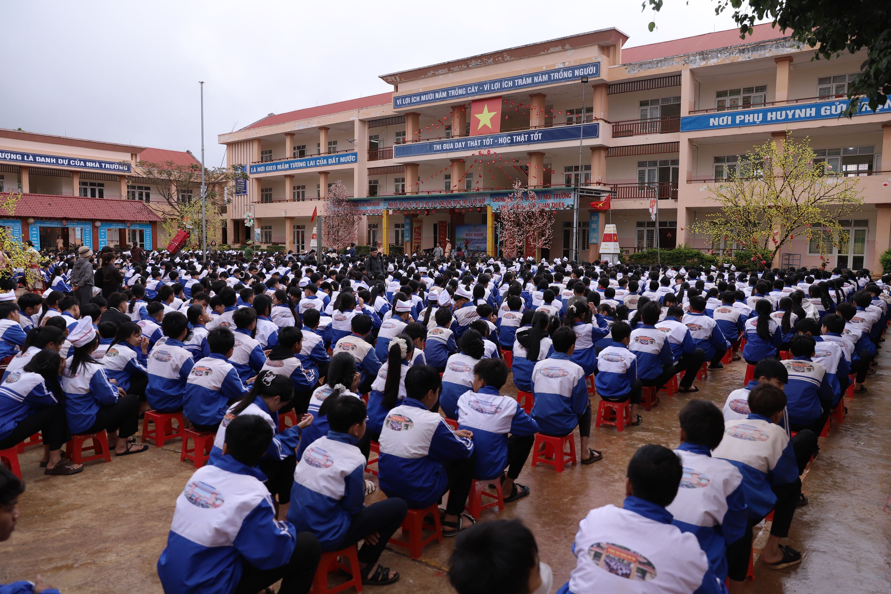 Toàn cảnh buổi tuyên truyền pháp luật về trật tự ATGT tại trường THCS Hoàng Văn Thụ, xã Quảng Sơn