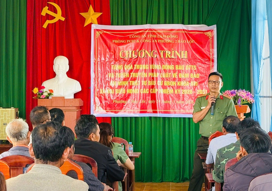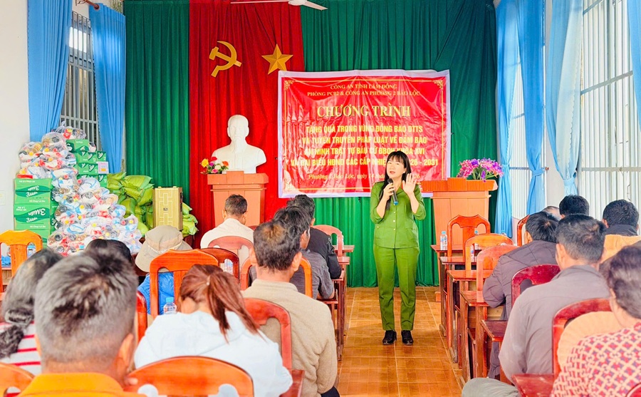 Không chỉ dừng lại ở công tác tuyên truyền, Công an Phường 2 Bảo Lộc và Phòng Cảnh sát hình sự đã tổ chức trao tặng 50 phần quà cho các hộ gia đình có hoàn cảnh khó khăn tại Tổ dân phố 38, Phường 2 Bảo Lộc, tỉnh Lâm Đồng. Mỗi phần quà trị giá khoảng 400.000 đồng, thể hiện sự quan tâm, sẻ chia của lực lượng Công an đối với đời sống người dân, đặc biệt là những hộ còn gặp nhiều khó khăn.