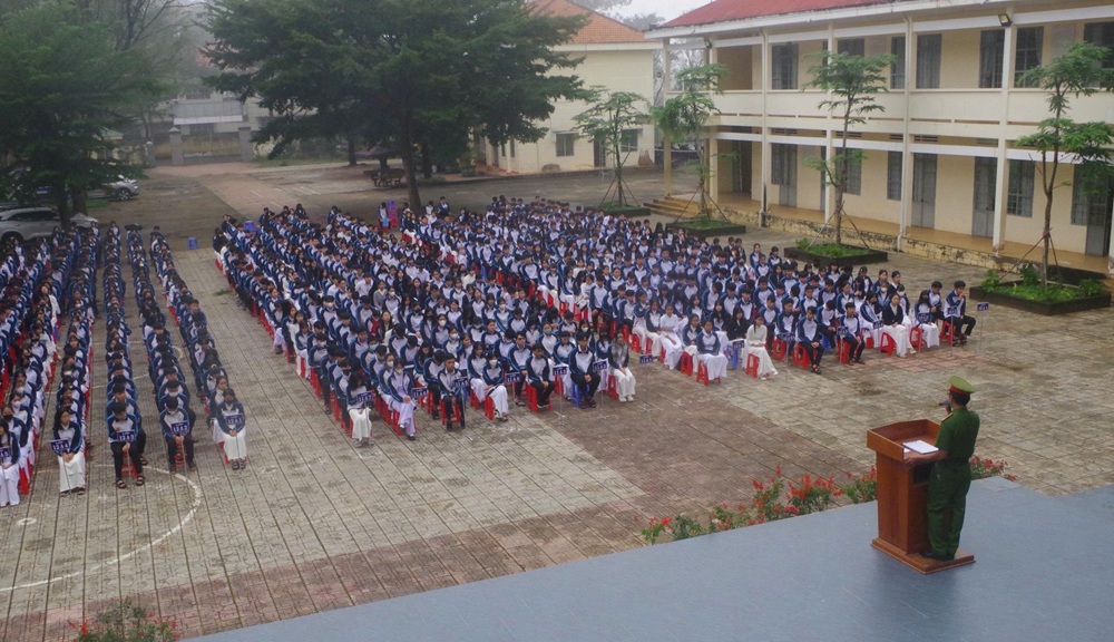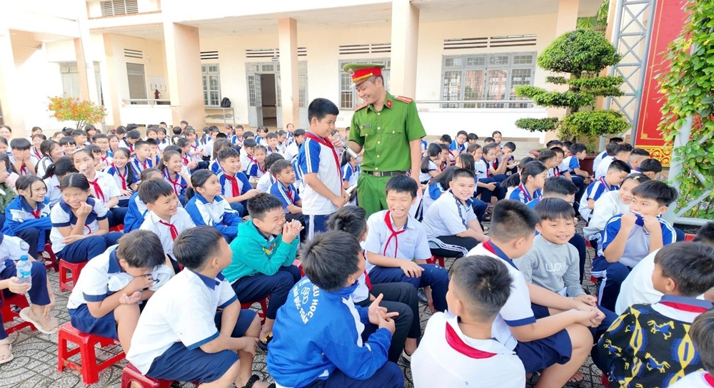 Tương tự, tại Đắk Mil, trong hai ngày 10 –11/11/2025, Công an xã phối hợp 4 trường học tổ chức tuyên truyền pháp luật cho hơn 2.000 học sinh. Nội dung trọng tâm gồm: Luật Giao thông đường bộ 2024, kỹ năng phòng chống đuối nước, kỹ năng giải quyết mâu thuẫn lành mạnh để phòng ngừa bạo lực học đường.