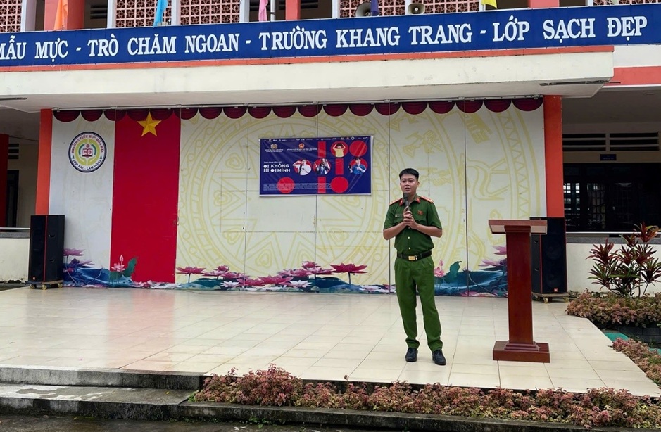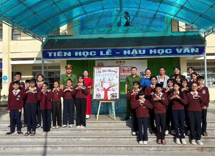 Tại Đạ Huoai, Công an xã phối hợp Trường Tiểu học Trần Quốc Toản tuyên truyền kỹ năng nhận biết hành vi bạo lực học đường và hướng dẫn trẻ em cách ứng xử khi gặp nguy hiểm trên mạng, nhấn mạnh số tổng đài 111 là kênh hỗ trợ quan trọng.