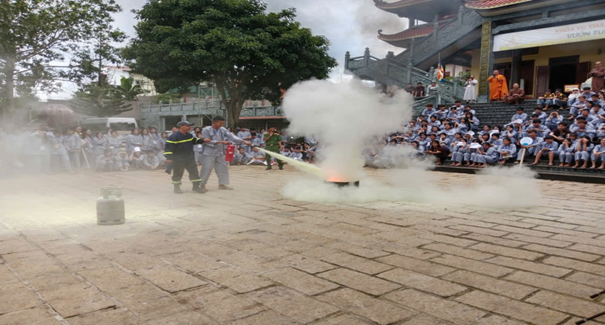 Đại diện Ban Quản trị Chùa Phước Quang bày tỏ sự ghi nhận và cảm ơn đối với sự phối hợp của lực lượng Công an, đồng thời đánh giá đây là hoạt động thiết thực, ý nghĩa, góp phần nâng cao kỹ năng và nhận thức về an toàn cho thanh thiếu niên.