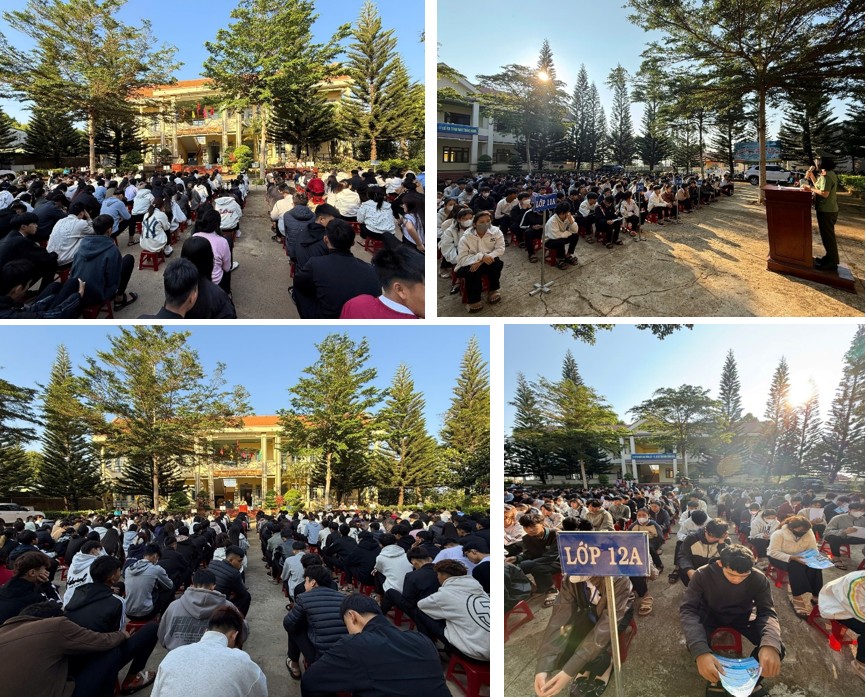 Tham dự buổi tuyên truyền có đồng chí Thiếu tá Ngô Lê Minh Đức, Phó Trưởng Công an xã Thuận An, Ban Giám đốc Trung tâm, các thầy cô giáo và hơn 400 học sinh.