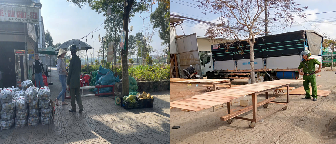 Công an xã Bảo Lâm 2 tuyên truyền và xử lý các hành vi lấn chiếm vỉa hè
