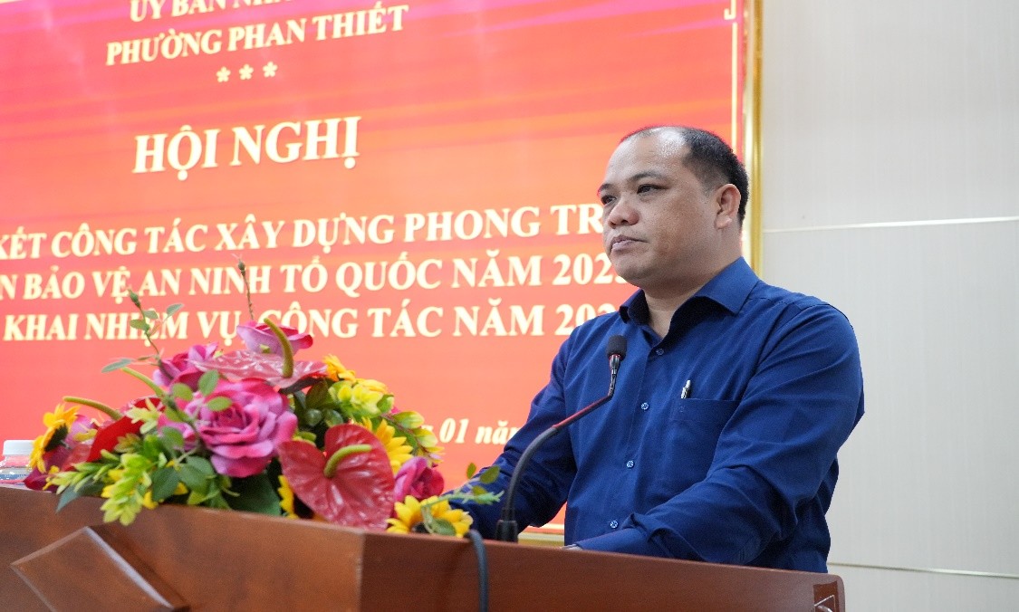 Đồng chí Trần Nguyên Lộc, Chủ tịch UBND phường Phan Thiết phát biểu tại Hội nghị