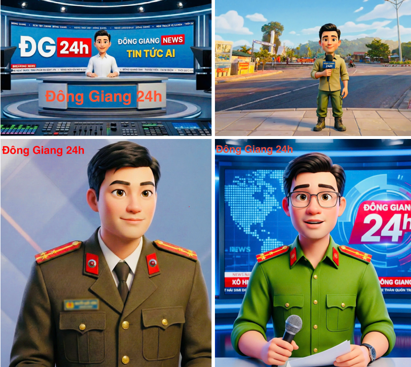 Các nhân vật trợ lý ảo của trang “Đông Giang 24h” được tạo nên bằng ứng dụng công nghệ trí tuệ nhân tạo (AI) phục vụ công tác tuyên truyền pháp luật trên không gian mạng tại địa bàn xã Đông Giang thời gian qua.