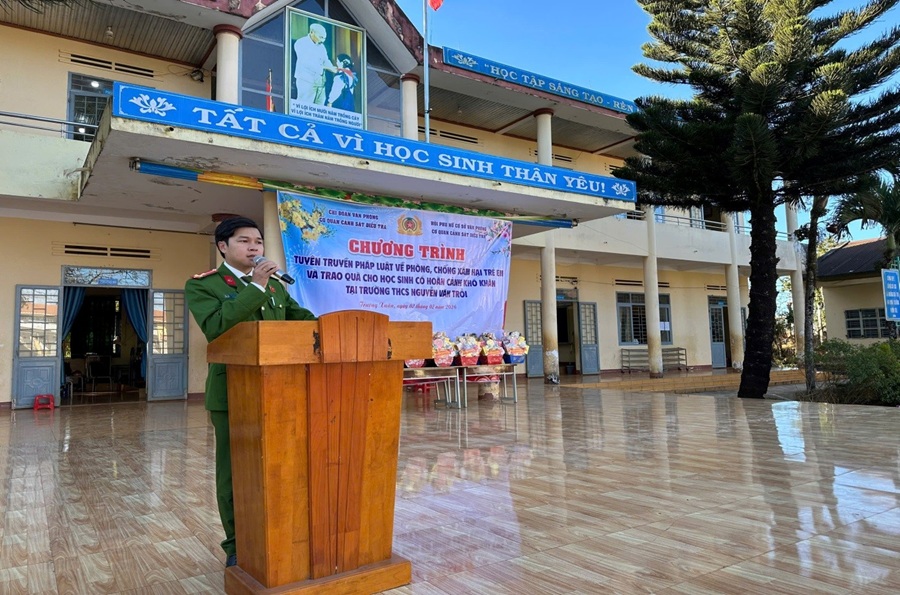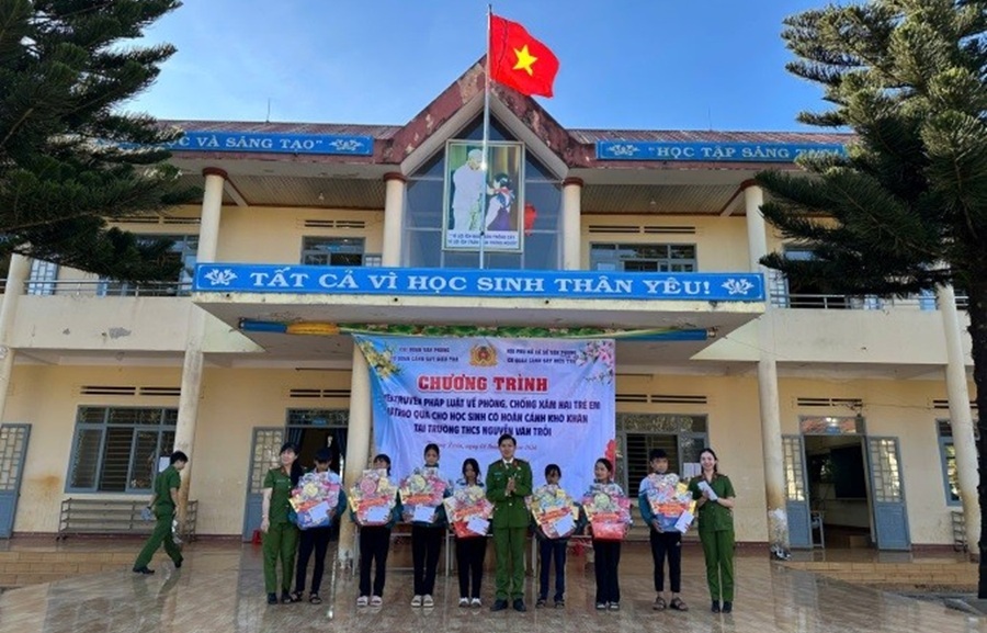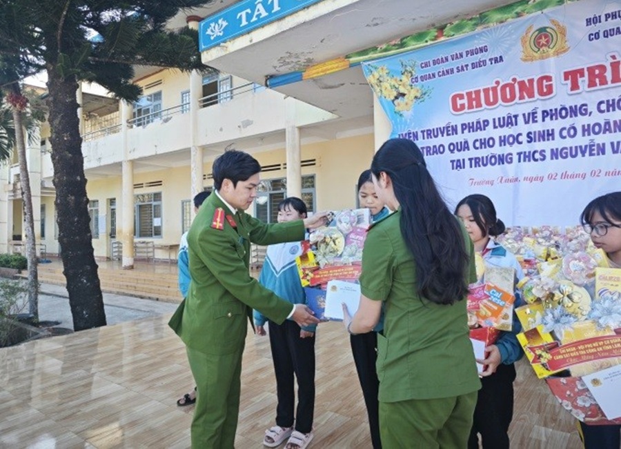 Bên cạnh hoạt động tuyên truyền pháp luật, nhằm động viên, khích lệ tinh thần học tập của các em học sinh có hoàn cảnh khó khăn, Chi đoàn và Hội Phụ nữ cơ sở Văn phòng Cơ quan CSĐT Công an tỉnh Lâm Đồng đã trao tặng 15 phần quà, gửi gắm sự quan tâm, sẻ chia và động viên các em nỗ lực vươn lên trong học tập.