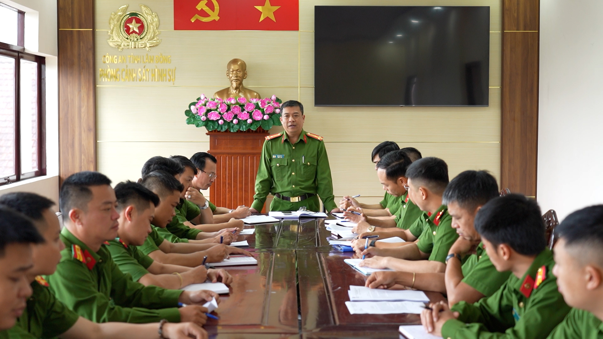 Thượng tá Trần Văn Trà - Trưởng Phòng Cảnh sát hình sự Công an tỉnh Lâm Đồng họp triển khai công tác tại đơn vị