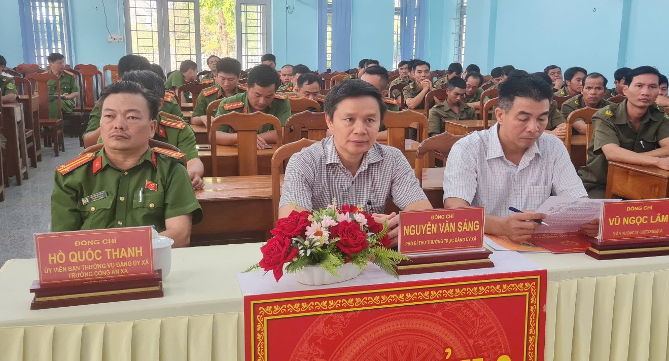 Tham dự và chỉ đạo hội nghị có đồng chí Nguyễn Văn Sáng - Phó Bí thư Thường trực Đảng ủy; đồng chí Vũ Ngọc Lâm - Phó Bí thư Đảng ủy, Chủ tịch Ủy ban nhân dân xã; đồng chí Trung tá Hồ Quốc Thanh - Ủy viên Ban Thường vụ Đảng ủy, Trưởng Công an xã cùng toàn thể cán bộ, chiến sĩ Công an xã và 51 đồng chí lực lượng an ninh, trật tự ở cơ sở.