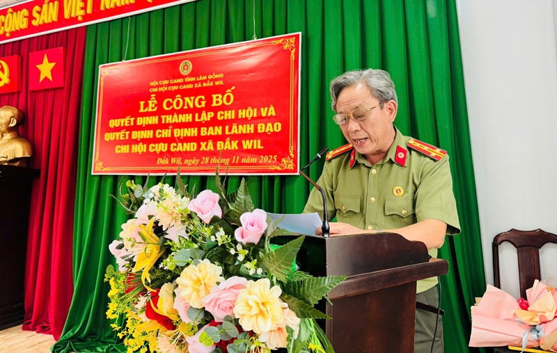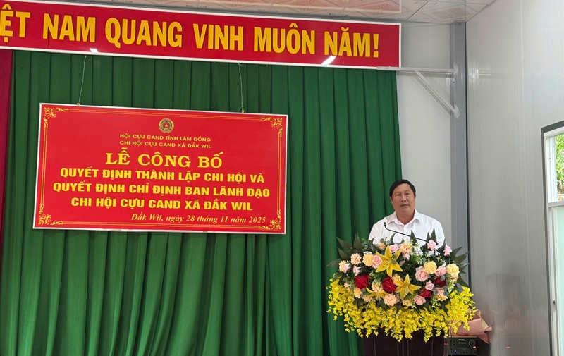 Thực hiện hướng dẫn của Ban Thường vụ Hội Cựu Công an nhân dân tỉnh Lâm Đồng, Công an xã Đắk Wil đã phối hợp tổ chức Lễ Công bố Quyết định thành lập Chi hội và chỉ định Ban Chấp hành lâm thời gồm 23 hội viên. Đồng chí Lê Văn Toản (nguyên Trưởng Công an xã Đắk Wil) được chỉ định làm Chi hội trưởng. Tham dự buổi lễ có đồng chí Nguyễn Tường Thuật - Ủy viên Ban Thường vụ Hội Cựu Công an nhân dân tỉnh Lâm Đồng; đại diện Thường trực Đảng ủy, HĐND, UBND, UBMTTQ Việt Nam xã; Trưởng Công an xã, đại diện các ban, ngành, đoàn thể và các đồng chí nguyên là cán bộ, chiến sĩ Công an nhân dân đã nghỉ hưu, chuyển ngành hiện sinh sống trên địa bàn.