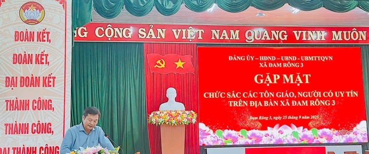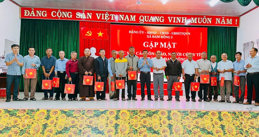 Đại diện các tổ chức tôn giáo và người có uy tín tại buổi gặp mặt bày tỏ sự đồng thuận, vui mừng trước những kết quả mà địa phương đã đạt được, đồng thời đề xuất nhiều ý kiến liên quan đến việc nâng cao đời sống Nhân dân, xây dựng nông thôn mới và phát huy vai trò của tôn giáo, người có uy tín trong phong trào toàn dân bảo vệ an ninh Tổ quốc. Dịp này, Đảng ủy, UBND xã Đam Rông 3 đã trao tặng quà động viên các chức sắc tôn giáo và người có uy tín trên địa bàn.