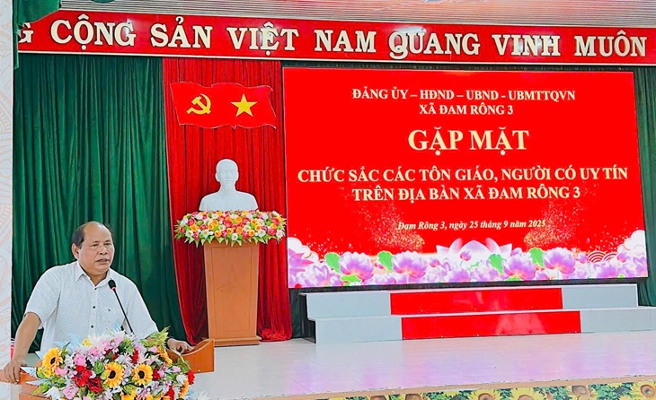 Phát biểu tại buổi gặp mặt, đồng chí Liêng Hót Ha Hai – Bí thư Đảng ủy xã Đam Rông 3 ghi nhận và biểu dương những đóng góp tích cực của các chức sắc tôn giáo và người có uy tín đối với sự phát triển của địa phương. Đồng chí khẳng định đây là cầu nối quan trọng giữa cấp ủy, chính quyền với Nhân dân, góp phần triển khai hiệu quả các phong trào thi đua yêu nước, xây dựng khối đại đoàn kết toàn dân tộc, giữ vững ổn định chính trị và phát triển kinh tế - xã hội.