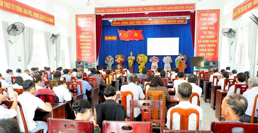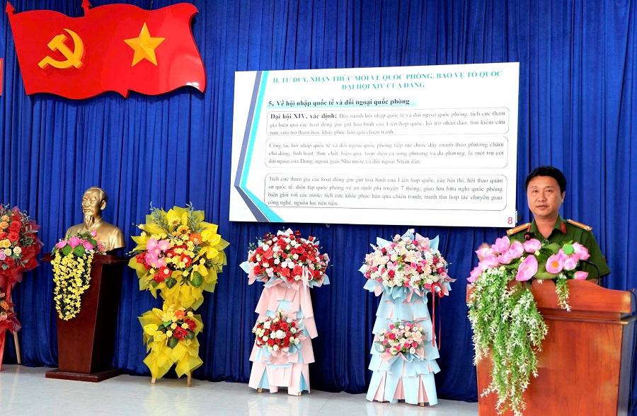 Đồng chí Trung tá Tô Đức Nghĩa, Trưởng Công an xã Hàm Kiệm trình bày chuyên đề về tư duy, nhận thức mới trong nhiệm vụ quốc phòng, bảo vệ Tổ quốc theo tinh thần Đại hội XIV của Đảng. Nội dung chuyên đề nhấn mạnh những chủ trương chiến lược của Đảng về củng cố quốc phòng, bảo vệ Tổ quốc từ sớm, từ xa; giữ vững ổn định chính trị, bảo vệ độc lập, chủ quyền, toàn vẹn lãnh thổ, tạo môi trường thuận lợi cho phát triển đất nước.