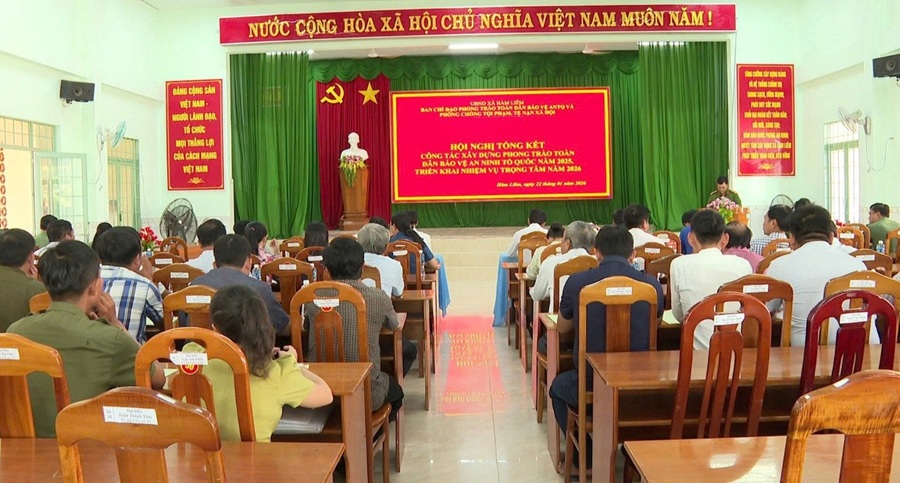 Tại hội nghị, các đại biểu đã xem phóng sự và thông qua Báo cáo tổng kết năm 2025. Phong trào Toàn dân bảo vệ ANTQ trên địa bàn xã tiếp tục được triển khai đồng bộ, sâu rộng, phát huy vai trò nòng cốt của lực lượng Công an và sức mạnh đoàn kết của toàn dân. An ninh chính trị, trật tự an toàn xã hội cơ bản ổn định, các mô hình tự quản duy trì hiệu quả. Công tác tuyên truyền, vận động Nhân dân được tổ chức với nhiều hình thức đa dạng, nâng cao ý thức chấp hành pháp luật và tinh thần trách nhiệm trong giữ gìn ANTT. 100% thôn, cơ quan, trường học trên địa bàn đạt tiêu chuẩn “An toàn về an ninh, trật tự”.