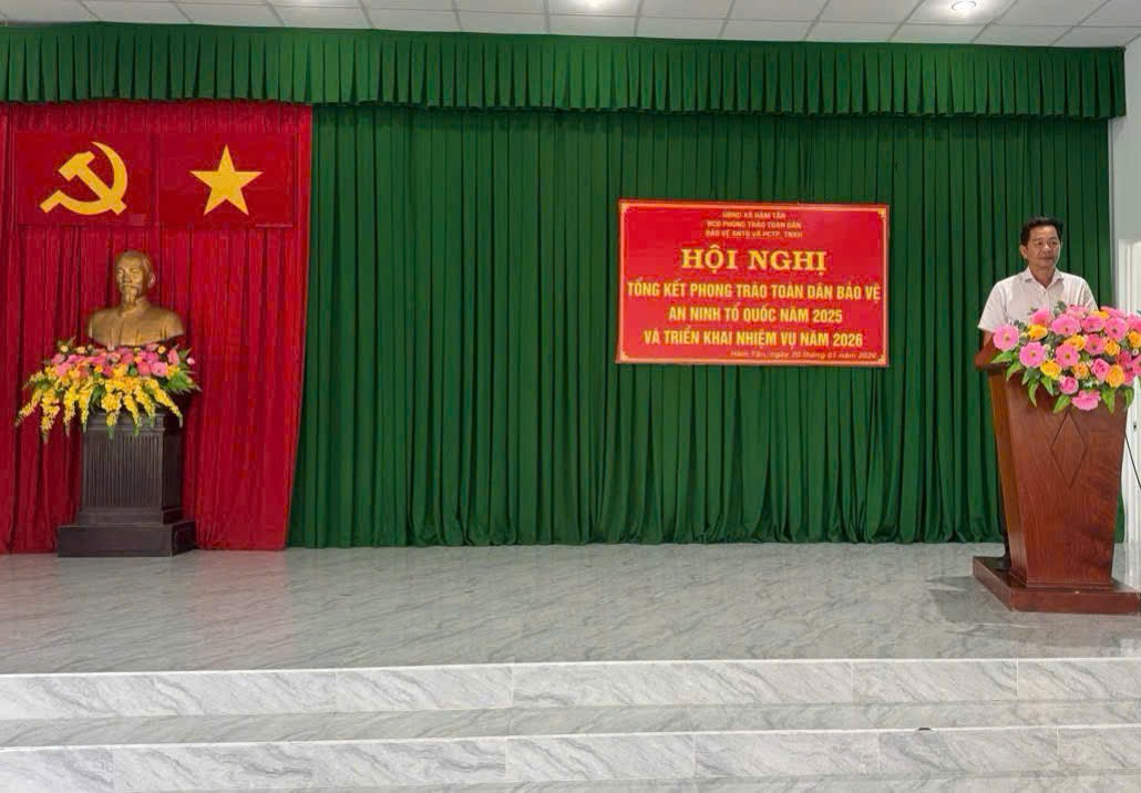 Phát biểu chỉ đạo tại Hội nghị, đồng chí Nguyễn Thành Nam – Chủ tịch UBND xã, Trưởng Ban Chỉ đạo phong trào Toàn dân bảo vệ an ninh Tổ quốc xã Hàm Tân đã ghi nhận, biểu dương những nỗ lực, kết quả mà các ban, ngành, đoàn thể, lực lượng Công an xã và quần chúng Nhân dân đã đạt được trong năm qua; đồng thời yêu cầu tiếp tục phát huy vai trò, trách nhiệm của cả hệ thống chính trị và Nhân dân trong công tác giữ gìn an ninh, trật tự ở cơ sở.