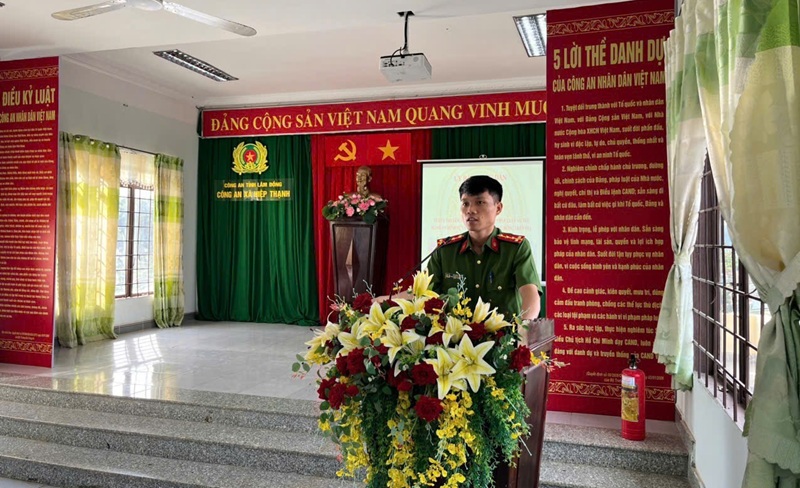 Đ/c Đại úy Vũ Kiều Anh – Phó Trưởng Công an xã tuyên truyên các quy định của pháp luật
