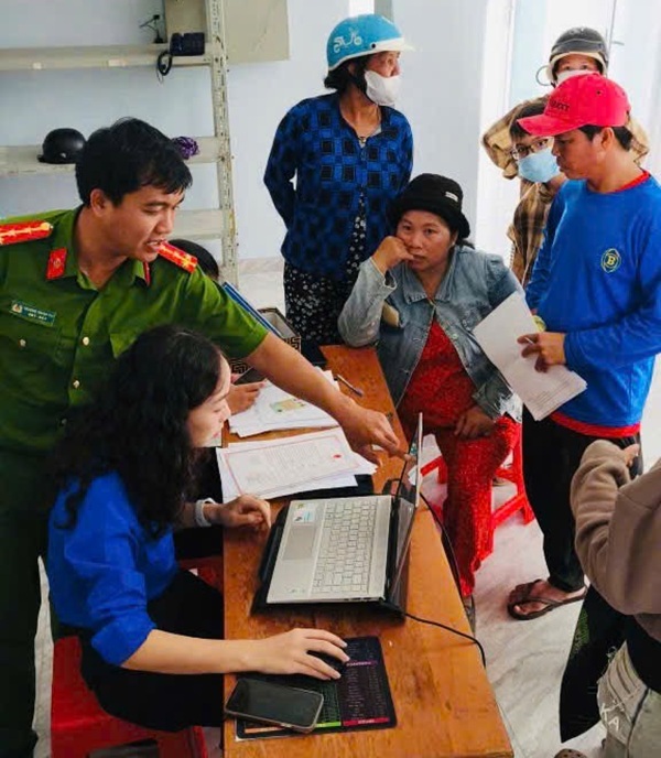 Công an xã phối hợp xã Đoàn tổ chức kích hoạt định danh mức 2