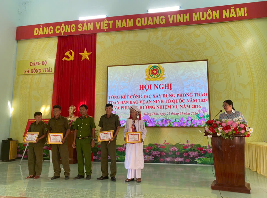 Phát biểu kết luận hội nghị, ông Phan Thanh Phương - Chủ tịch UBND xã ghi nhận và biểu dương những nỗ lực của lực lượng Công an và nhân dân, đồng thời nhấn mạnh và yêu cầu năm 2026 tiếp tục gặt hái nhiều thành công, mỗi cán bộ và người dân cần nâng cao hơn nữa tinh thần cảnh giác, trách nhiệm, cùng chung tay xây dựng xã Hồng Thái an toàn, phát triển.