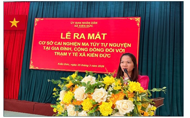 Tại buổi lễ, thừa ủy quyền Lãnh đạo Công an tỉnh, Công an xã đã công bố Quyết định số 2382/QĐ-CAT ngày 10/3/2026 của Giám đốc Công an tỉnh về việc công nhận Trạm Y tế xã Kiến Đức đủ điều kiện cung cấp dịch vụ cai nghiện ma túy tự nguyện tại gia đình và cộng đồng.