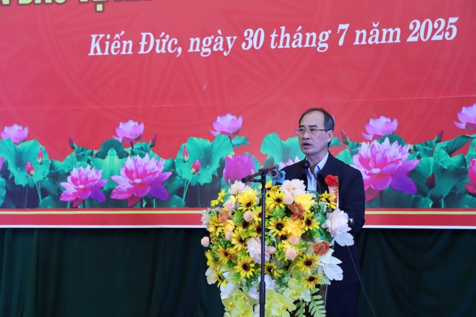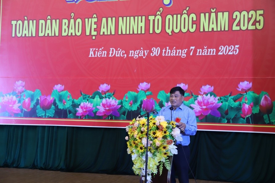 Chủ tịch HĐND xã Kiến Đức phát biểu tại ngày hội.