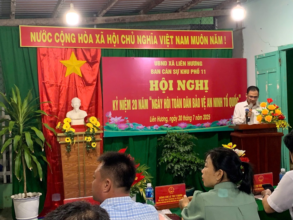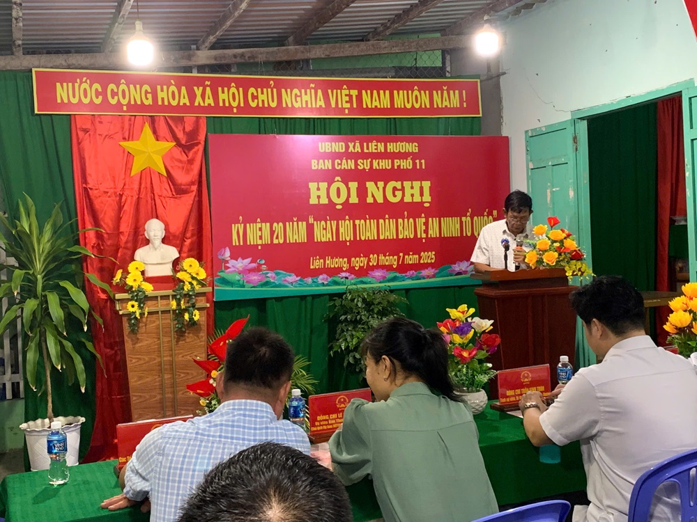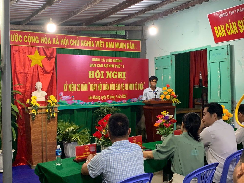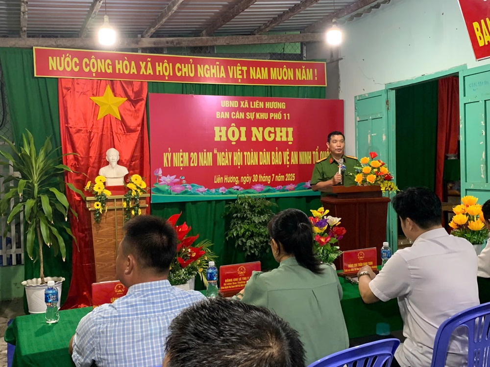 Đến dự và chỉ đạo có đồng chí Trần Sinh Toàn – Tỉnh ủy viên, Bí thư Đảng ủy xã; đại diện lãnh đạo UBMTTQ Việt Nam xã, các đoàn thể chính trị – xã hội; tập thể chỉ huy, cán bộ Công an xã; Ban cán sự 23 khu dân cư cùng hơn 120 đại biểu là Nhân dân, cán bộ, chức sắc tôn giáo, người có uy tín tại Khu phố 11.