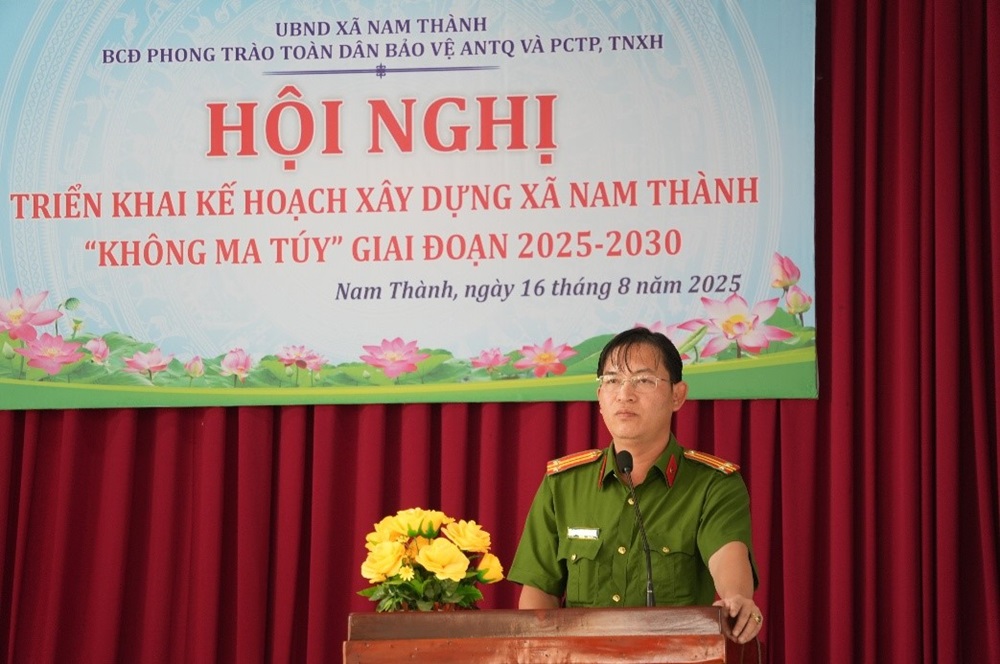 Nhằm chủ động phòng ngừa và đẩy lùi tệ nạn ma túy, ngày 29/7/2025, UBND xã Nam Thành đã ban hành Kế hoạch số 12/KH-UBND về xây dựng xã “không ma túy” giai đoạn 2025 – 2030, theo chỉ đạo của Bộ Công an, UBND tỉnh và Công an tỉnh Lâm Đồng. Kế hoạch đặt mục tiêu huy động sức mạnh tổng hợp của cả hệ thống chính trị và toàn dân trong công tác phòng, chống ma túy, không để hình thành tụ điểm phức tạp trên địa bàn.
